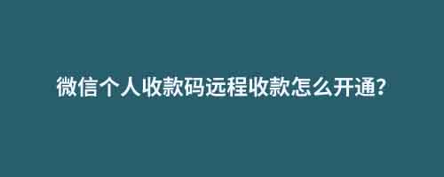 • 微信個人收款碼遠程收款怎么開通?