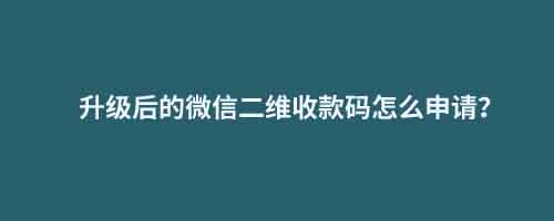 • 升級后的微信二維收款碼怎么申請?