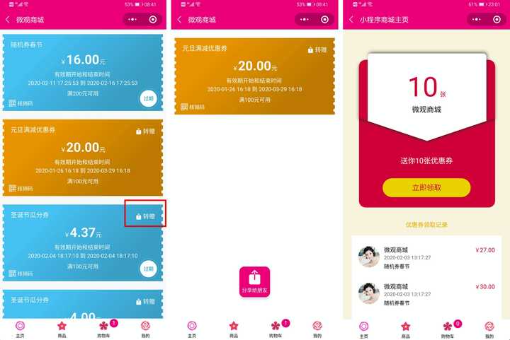 以下是微商城開發(fā)的小程序優(yōu)惠券功能: